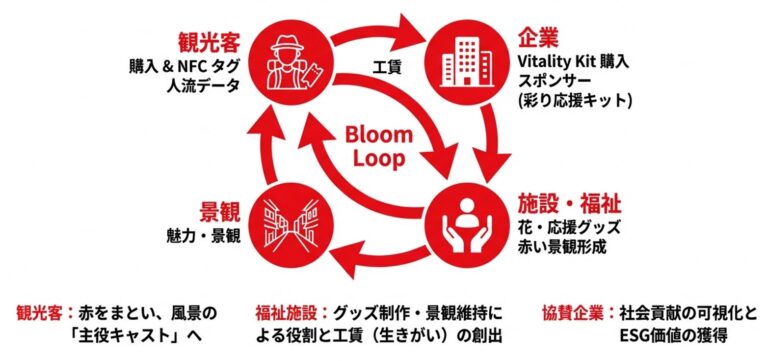 その想いから本構想では、観光・企業・福祉が分断されるのではなく、一つの循環としてつながり合う仕組みを設計しています。